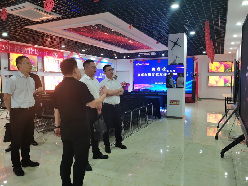 2023年5月16日下午,啟東市海復鎮黨委副書記車紅兵一行蒞臨江蘇亮彩電子有限公司考察交流。在公司總經理章九余、銷售副總經理方俊杰的陪同下對辦公環境、企業發展、文化建設等方面進行了全面了解。